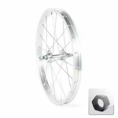 De couleur argent, cette roue avant convient pour un vélo d’enfant mesurant 16 pouces avec une largeur intérieure de 19 mm. Montée, la roue est équipée de rayons, d’un moyeu 20 trous et d’un axe à boulons en acier et aluminium. Si vous préférez une roue qui s’enlève à la main, il est possible de munir cette roue d’un axe creux et d’un serrage rapide.