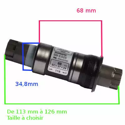 Ce boîtier est disponible avec de nombreuses longueurs d’axes. Choisissez la bonne longueur de boitier de pédalier pour respecter l’alignement de chaîne de votre transmission. Longueurs disponibles en option :