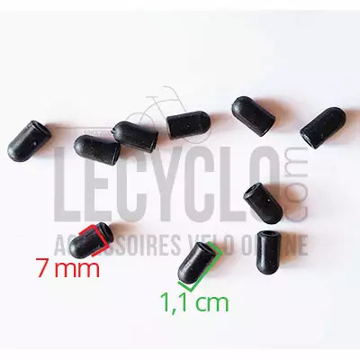 Ces capuchons en plastique souple sont compatibles avec les tringles classiques de garde boue et se placent simplement à l’extrémité de la tringle, en insérant la tringle dedans. Ils mesurent 1,1 cm de long pour 7 mm de large et sont vendus par 10. Le set pèse 4 grammes.