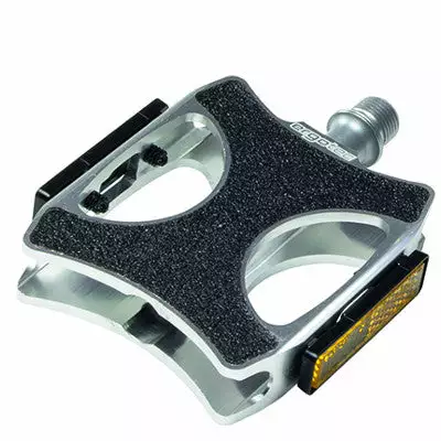 Ces pédales ont une apparence travaillée qui apporte une allure moderne au vélo. Leur taille de 98 x 78 cm offrent un support stable au pied. Elles sont conçues avec un cage en en aluminium 6061 et un axe en chromoly pour un poids de 346 g. Ces pédales sont livrées avec des réflecteurs pour apporter une meilleure visibilité. Avec un filetage standard de 9/16″, ces pédales s’adaptent sur la plupart des manivelles actuelles.