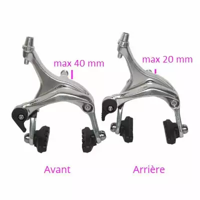 Cet ensemble de freins, modèle Performance, de la marque italienne Miche est conçu avec un système à tirage latéral et assure un freinage efficace. Chaque étrier de coloris argent est équipé de deux patins ajustables en hauteur. La marge de réglage est de 41 à 57 mm entre l’axe et la jante. Les patins fournis sont utilisables exclusivement sur des jantes à bande de freinage en aluminium ou en acier.