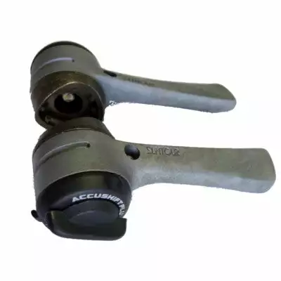 La manette du dérailleur arrière est indéxée et débrayable à friction. C’est à dire que le passage des vitesses se fait soit par crans arrêtés (indexation) soit à friction de manière continue par l’intermédiaire d’un levier permettant de changer de mode. La manette gauche commandant le dérailleur avant est à friction.