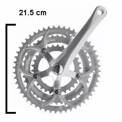 En acier poli, le pédalier assure une longue durée de vie. Il dispose de trois plateaux de 30, 42 et 52 dents. Ses trois plateaux sont interchangeables et ont un diamètre de fixation de 74 mm pour le plus petit plateau et de 110 mm pour les deux plus grands. Il est fourni avec ses deux manivelles en aluminium. La manivelle gauche du pédalier est aussi disponible à l’unité.