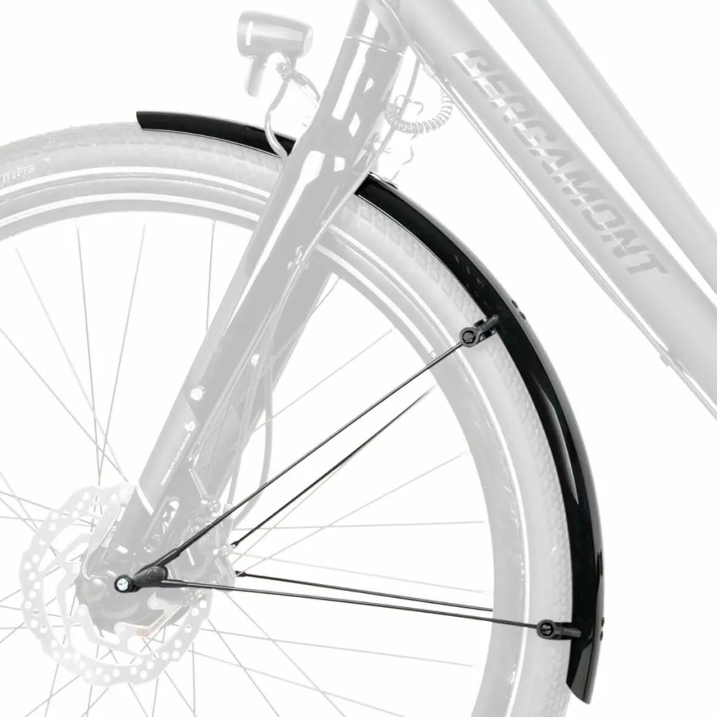 Le montage de ce modèle de garde boue est assez simple : les tringles viennent s’insérer de façon solide dans les attaches et l’autre extrémité se clipse sous le garde boue. Elles sont à placer sur les oeillets filetés du cadre, avec renfort de fixation sur le pivot de fourche (pour l’avant) et sur haubans et bas de tube de selle (pour l’arrière). Pour en savoir plus, visualisez la notice de montage du garde boue Bluemels SKS.