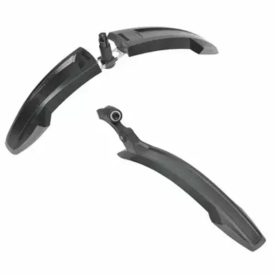Le set se compose du garde-boue avant Deflector FM60 et du garde-boue arrière Deflector RM60. Robustes et stables, ils sont adaptés pour les conditions extrêmes. Usinés en résine technopolymère, les deux garde boue sont dotés chacun d’une bavette surmoulée qui offre une protection accrue et une plus grande flexibilité du garde-boue. Le garde boue arrière, quant à lui, dispose d’un anneau réfléchissant sur le dessus afin d’apporter plus de visibilité au vélo.