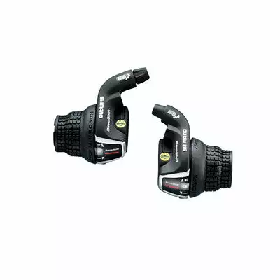 Nous proposons aussi une paire de manettes rotatives Shimano Tourney SL-RS45 3×7 vitesses entièrment indexées. Pour les transmission vélo à 6 pignons arrière, nous proposons la paire de poignées tournantes Revoshift 3×6.