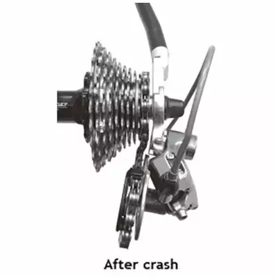 Cette patte de dérailleur de secours vous sera très utile si vous vous retrouvez avec une patte de dérailleur abimée ou cassée à l’issue d’une chute à vélo. Elle a été conçue pour vous permettre de rentrer chez-vous et se transporte très facilement. Son poids est de 42 g.