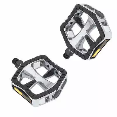 Avec des dimensions larges de 110.3 x 95.1 x 28.9 mm, ces pédales pour axe 9/16″ offrent une bonne stabilité du pied avec une large surface d’appui et un revêtement anti-glisse pour le confort du cycliste. Elles sont constituées d’un corps en aluminium et kraton, d’un axe en acier chromoly robuste, et d’un roulement à bille. Ces pédales couleur argent sont pourvues de 2 réflecteurs latéraux apportant une meilleure visibilité. Leurs poids total est de 542 g.