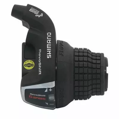 Retrouvez cette manette rotative six vitesses dans la paire de manettes 3×6 Revoshift Shimano.