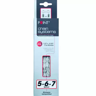 Cette chaîne de 116 maillons est spécialement conçue pour les vélos de 5, 6 et 7 vitesses. Elle est compatible avec la grande majorité des dérailleurs allant jusqu’à 21 vitesses. La chaine est livrée avec une attache rapide, son montage et démontage se font rapidement et plus facilement. Un maillon à attache rapide pour chaine vélo est disponible à l’unité en Options.