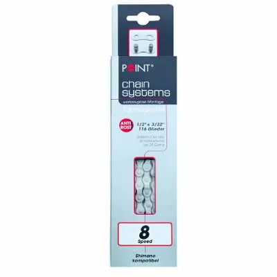 Cette chaîne pour vélo a bénéficié d’un traitement antirouille garantissant sa longévité. Composée de 116 maillons, elle est idéale pour équiper les vélos de 8 pignons. Elle est compatible avec la large majorité des dérailleurs allant jusqu’à 24 vitesses, comme SRAM ou Shimano.