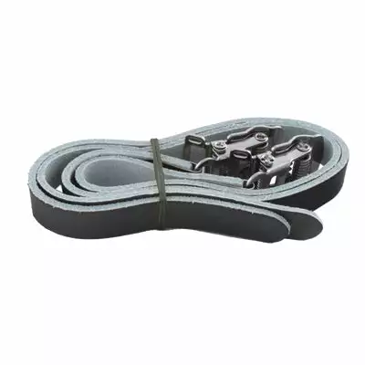 Ces sangles en cuir noir équipent des cale pieds pour vélo. Leur longueur est de 400 mm et ils se referment par des boucles en acier. Elles permettent de maintenir le pied du cycliste sur la pédale du vélo de manière à obtenir un pédalage plus efficace. Vendues par paire.