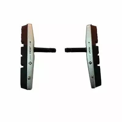 Ces patins de frein sont prévus pour pour être utilisés sur des vélos avec des freins V Brake. Le porte-patin maintient une cartouche de patin qui est échangeable. Fixée au support par une épingle en acier inoxydable, elle peut être remplacée par des patins de remplacement, une fois usées. Des patins supplémentaires sont disponibles en option.