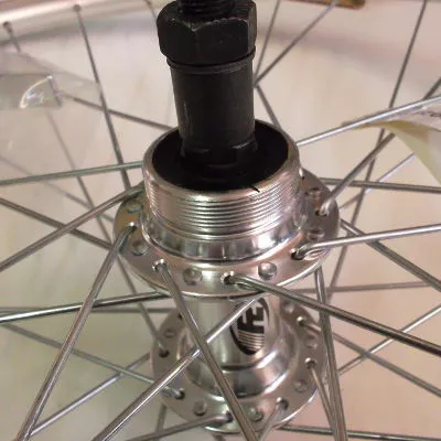 Elle possède un pas de vis qui permet d’y installer une roue libre.