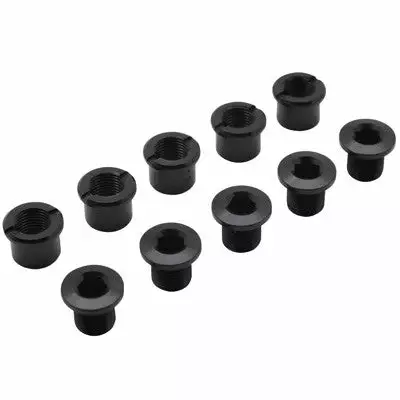 Cet ensemble de cinq vis et leur écrou cheminée haute permet de fixer les plateaux doubles sur les pédaliers de vélo. Ce kit comprend 5 vis et 5 cheminées, ce qui convient à la plupart des types de pédaliers à double plateaux.