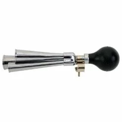 Ce klaxon poire pour vélo est en acier chromé. Il permet de signaler votre présence sur la route lorsque le danger est imminent. Ses 3 trompes émettent 3 différents sons harmonieux et puissants qui rappellent les klaxons des voitures américaines des années 60. Légère, elle pèse 230 grammes.